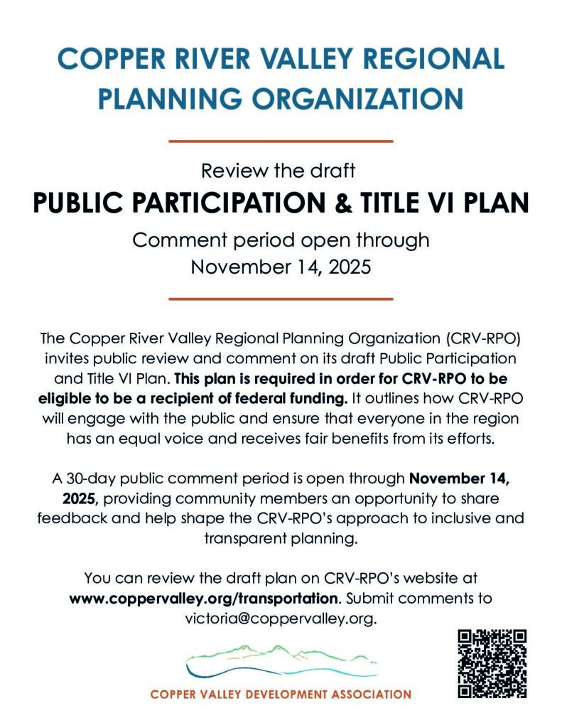 Below you will find agendas, meeting minutes, and other documents from the Copper River Valley Regional Planning Organization. Click on the meeting dates below to find the documents associated with each meeting.